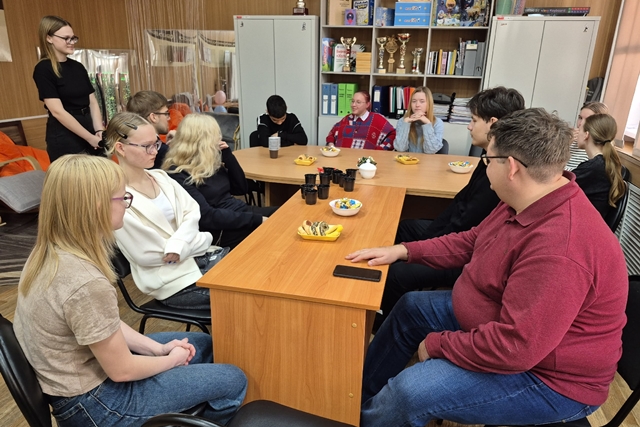 В неформальной обстановке состоялось первое в этом учебном году заседание клуба «РЕСУРС» для студентов с инвалидностью и ОВЗ. За чашкой чая ребята вместе с методистом по инклюзии Калашниковой М.А., педагогом-психологом Никулиной Л.Ю. и педагогом-организатором Дерябиным А.В. рассказывали о себе, делились впечатлениями о поездках и достижениях. Елизавета Баркова, 35 гр., не смогла присутствовать, зато записала для членов клуба мотивационный видеоролик.