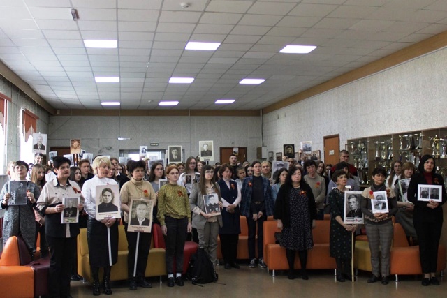 В конце программы был организован настоящий Бессмертный Полк – преподаватели и студенты колледжа принести с собой фотографии воевавших родственников.