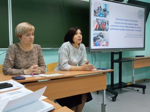 После приветственного слова директора колледжа Л. Г. Бобковой участники встречи обсудили практики реализации модели дуального обучения студентов с заместителем директора по образовательной деятельности ЦРСК Т. А. Жорновой. Об организации такого обучения студентов педколледжа рассказала заместитель директора по учебной работе Г. Н. Кузменкина.