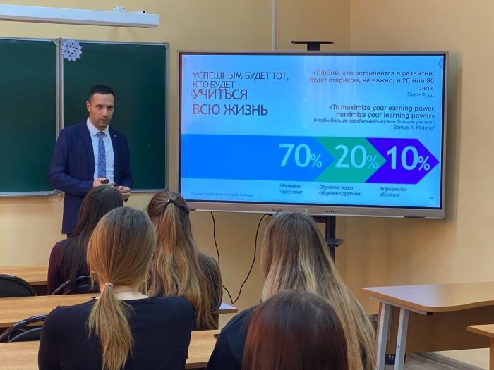 25.01.2023 г. в КПК для студентов группы № 32 по специальности 44.02.05 Коррекционная педагогика в начальном образовании и группы № 46 по специальности 44.02.04 Специальное дошкольное образование прошел День финансовой грамотности. Гостем мероприятия стал руководитель направления ипотечного кредитования Сбербанка Афанасьев Тимур.