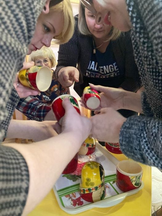 Участники мероприятия собирали матрешек, заплетали косы, слушали колыбельную и укачивали куклу-малыша.
