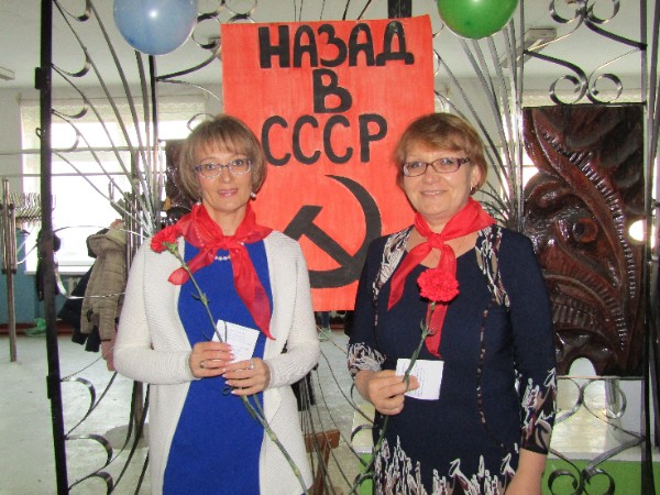 Педагоги и студенты окунулись в атмосферу коммунизма, коллективизации и пионерии. Студентами 41 группы была организована фотозона, доска почёта.