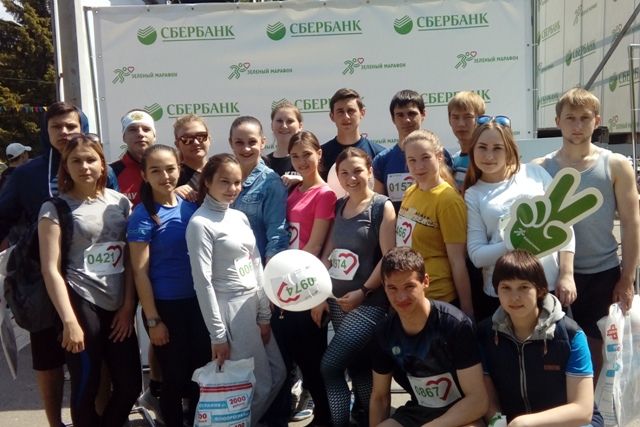 Следующими в массовом забеге «Зеленый марафон» бежали сотрудники компаний, пресса и все желающие. И наши студенты тоже приняли в нем участие.