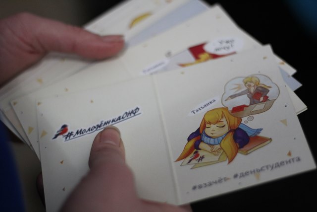 • акция «Татьянка», которая была проведена при поддержке ОНФ «Молодежка» - члены МО «Ювентис» провели опрос на различные студенческие темы среди студентов, наградой за ответы стали яркие фирменные открытки;