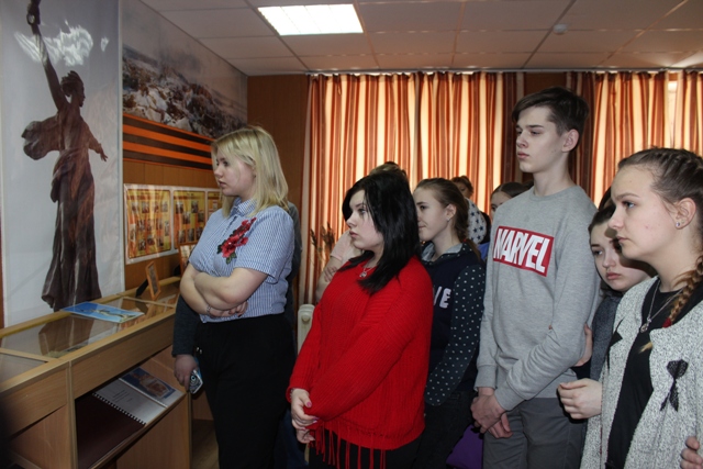 Накануне, в музее Сталинградской славы (руководитель И.А. Катайцева) для всех студентов 1 курса прошли экскурсии, посвященные памятной дате и истории музея. Экскурсоводами были студенты 21 группы Могутов И. и Лагутенко Т., и группы №34 Александрова Н. и Коровина М.