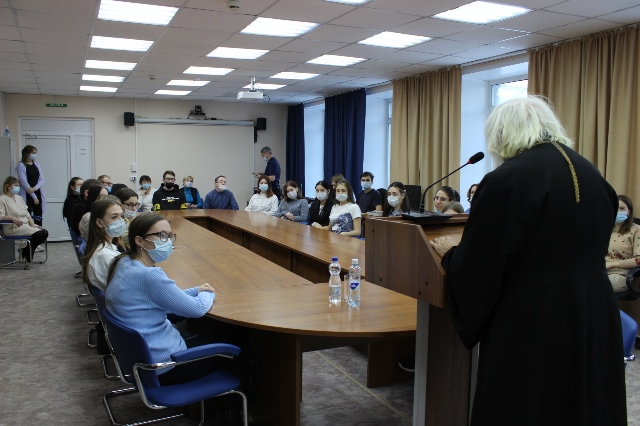 7 декабря 2021 года в Учебно-информационном центре ГБПОУ «Курганский педагогический колледж» состоялась встреча студентов 3-4 курса с протоиереем Евгением Соколовым, руководителем миссионерского отдела Архангельской епархии, настоятелем домового храма в честь Святого праведного Иоанна Кронштадтского при Северном Арктическом федеральном университете имени М.В. Ломоносова.