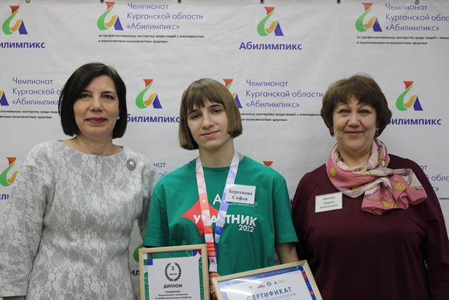 В Кургане наградили победителей Национального чемпионата по профессиональному мастерству среди инвалидов и лиц с ОВЗ «Абилимпикс» 2022 года. Награждение проходило на площадке ЦРД «Абилимпикс» ГБПОУ «Курганский педагогический колледж» с участием заместителя Губернатора Курганской области по социальной политике Ларисы Кокориной, директора Департамента образования и науки Курганской области Андрея Кочерова, начальника Управления
