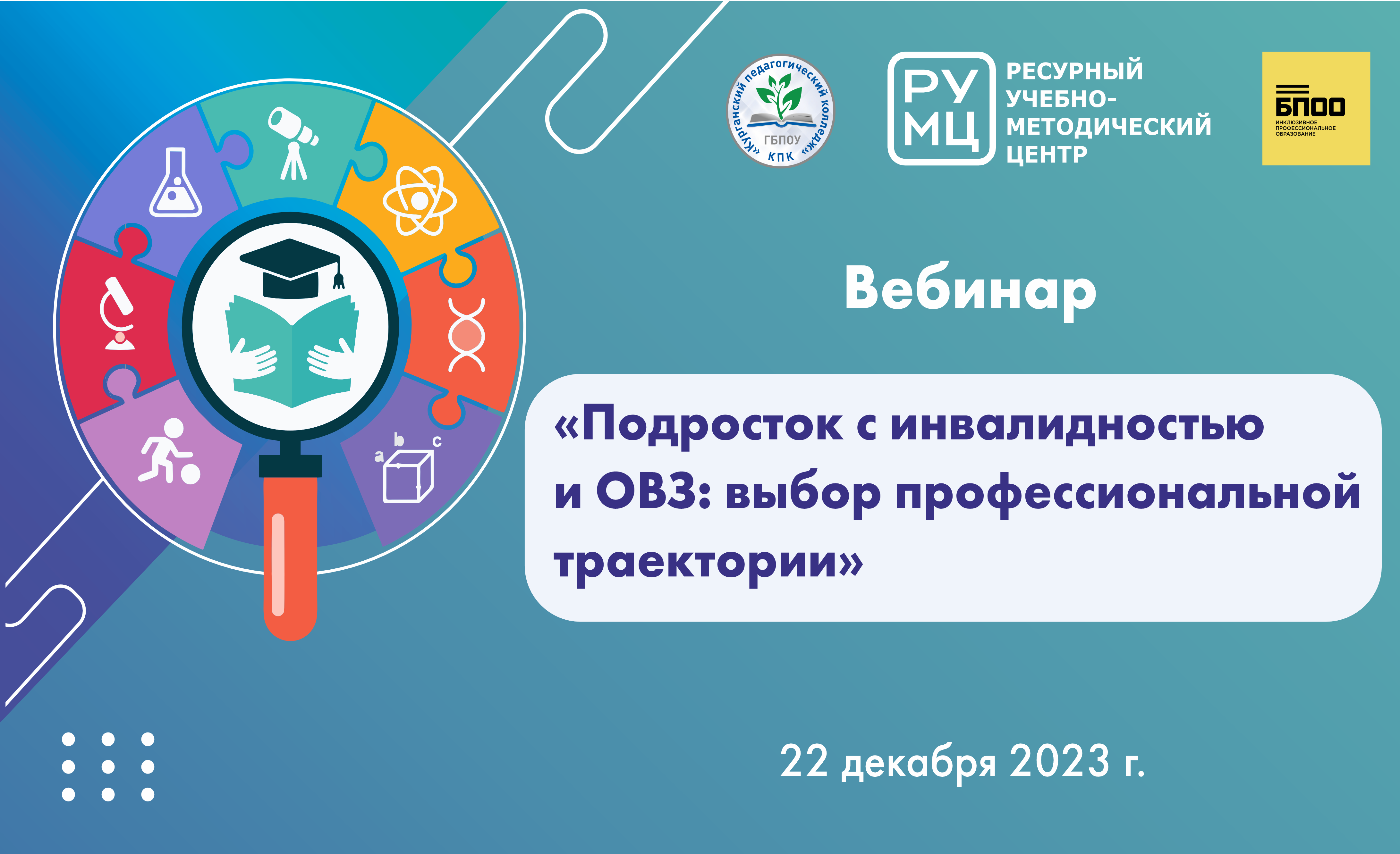 22 декабря 2023 г специалисты РУМЦ СПО Курганской области провели вебинар «Подросток с инвалидностью и ОВЗ: выбор профессиональной траектории». Участниками вебинара стали руководящие и педагогические работники из профессиональных образовательных организаций, общеобразовательных школ и школ-интернатов Курганской области.