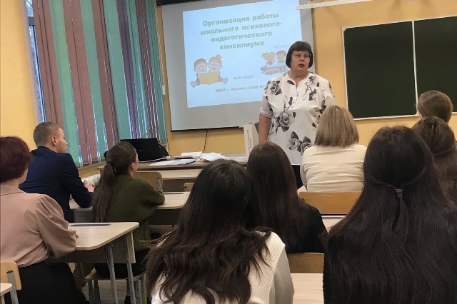 В рамках дуального обучения студенты группы 22, обучающиеся по специальности «Коррекционная педагогика в начальном образовании», посетили МБОУ «СОШ №11» города Кургана. Заместитель директора по УВР Суменкина Г.В. познакомила будущих учителей с особенностями организации и содержанием работы школьного психолого-педагогического консилиума. Студенты узнали о тесной связи школьного консилиума с территориальной психолого-медико-педагогической комиссией.