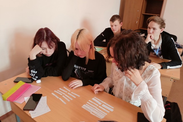 Представитель библиотеки имени В.В. Маяковского Шахматова Тамара Александровна провела игру для студентов групп 10,14К, 15, 17, 20. Ребята активно включились в процесс и продемонстрировали свои знания по родному русскому языку. Они с удовольствием расшифровывали анаграммы, угадывали фразеологизмы по картинке, объясняли значение крылатых слов и выражений, собирали пословицы и отгадывали ребусы.